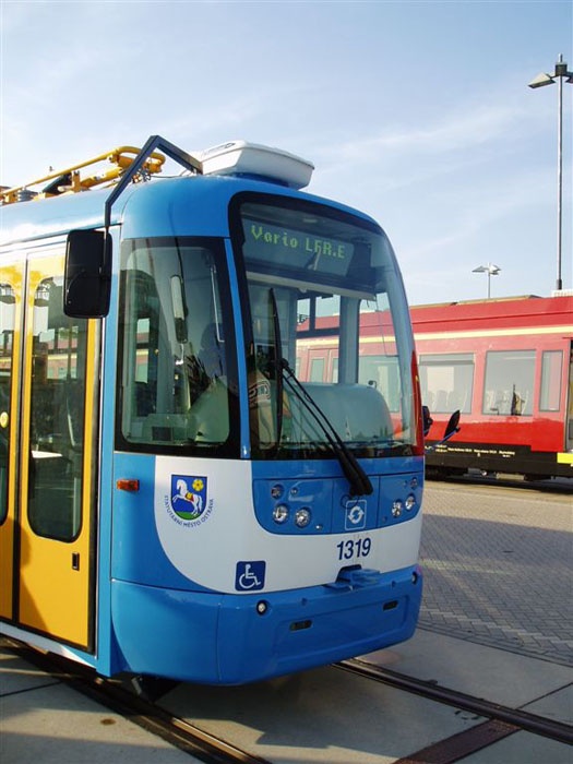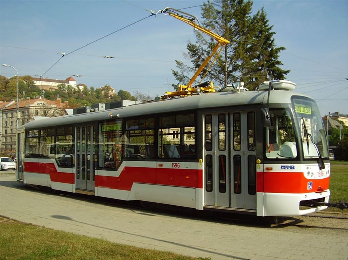By the tramcar body´s width of 2 480 mm, which is in accordance with the ČSN EN norms, the distance of pivots ought to be extended to 7 500 mm. Floor height above the top of the rail 860 / 350 mm. The electric equipment is mounted inside containers on the roof of the vehicle. The vehicle design uses state-of-the-art engineering solutions closed prophiles, glued forefronts and anticorrosive protection. It is registred as utility model at the Industrial Property Office of the Czech Republic under No. 1432 dated 10 May 2004.